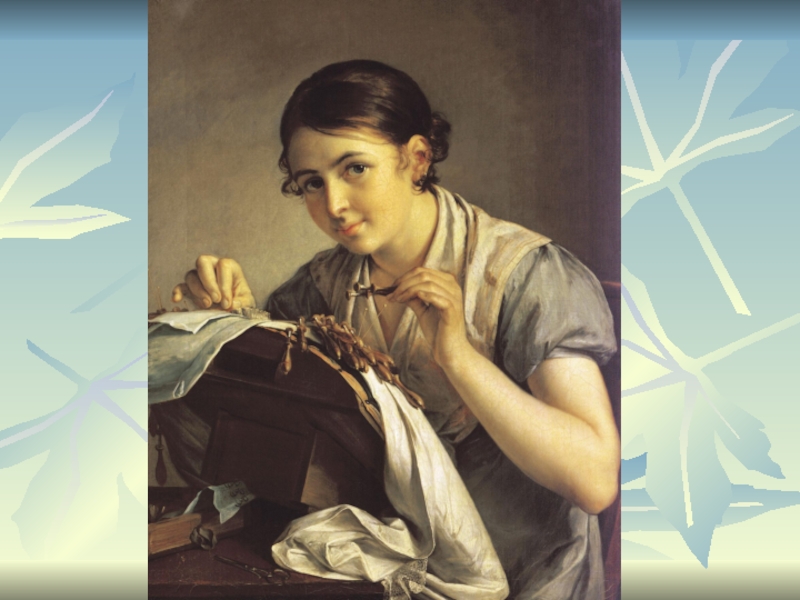 Боярышня, которая всплеснув руками, прижала их к груди и
