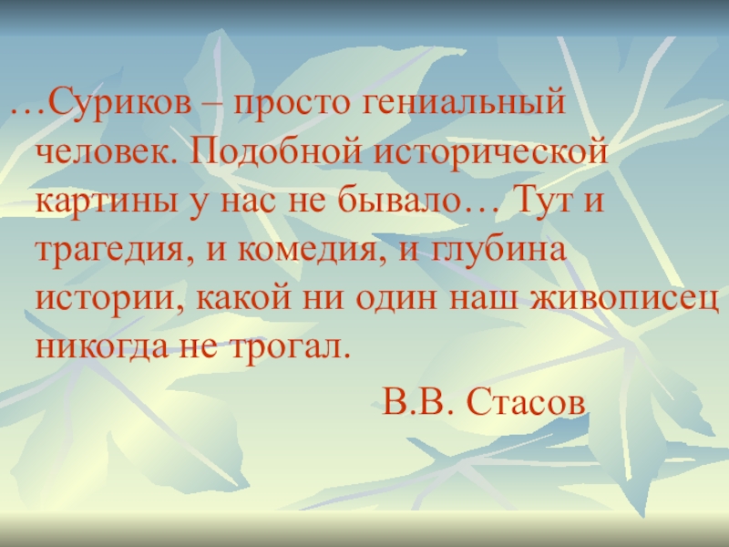 …Суриков – просто гениальный человек. Подобной исторической картины у нас не