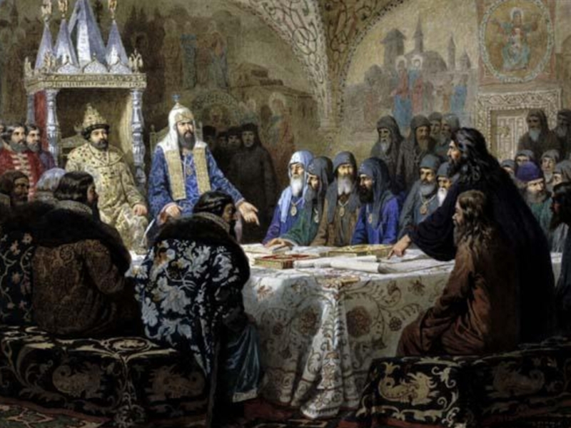 Выглядывающая из-за спин людей монашка, возможно, тайная раскольница.
