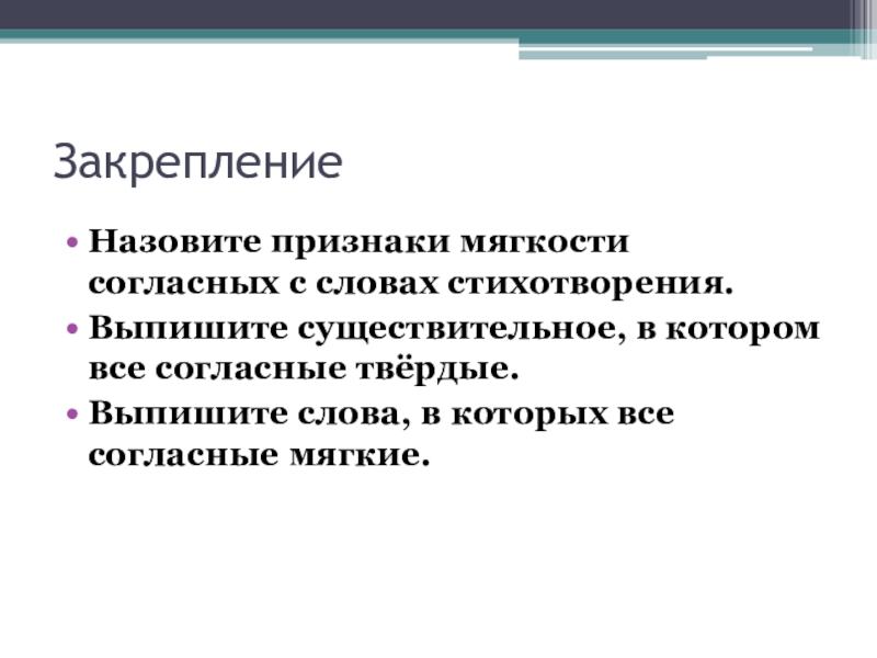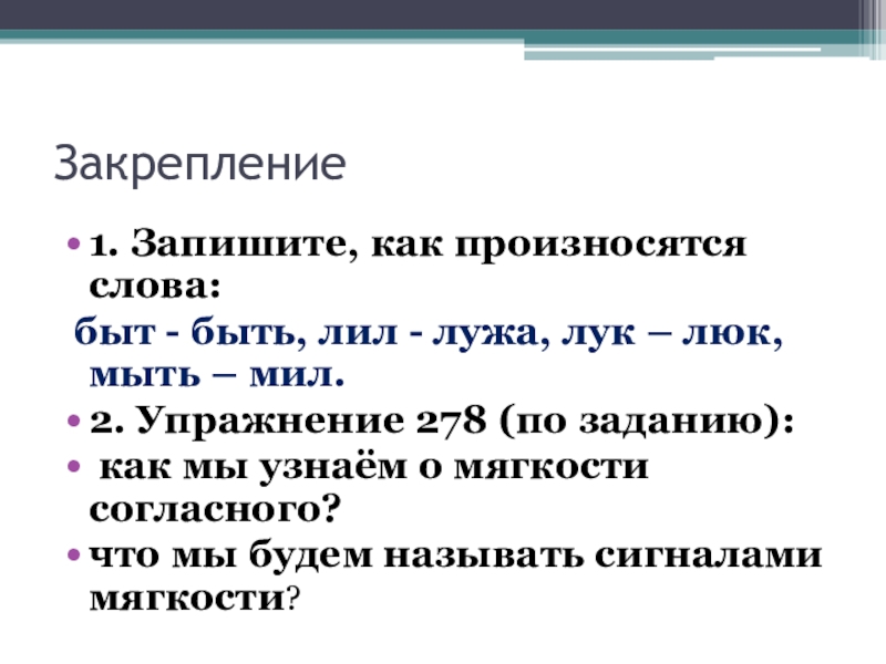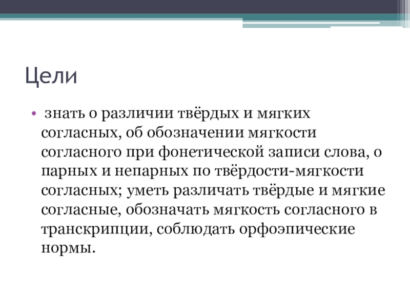 мягкости согласного при фонетической записи слова, о парных и непарных по твёрдости-мягкости согласных; уметь различать твёрдые и мягкие согласные, обозначать мягкость согласного в транскрипции, соблюдать орфоэпические нормы.