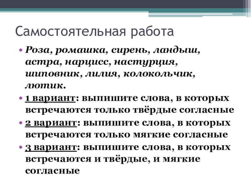 1 вариант: выпишите слова, в которых встречаются только твёрдые согласные