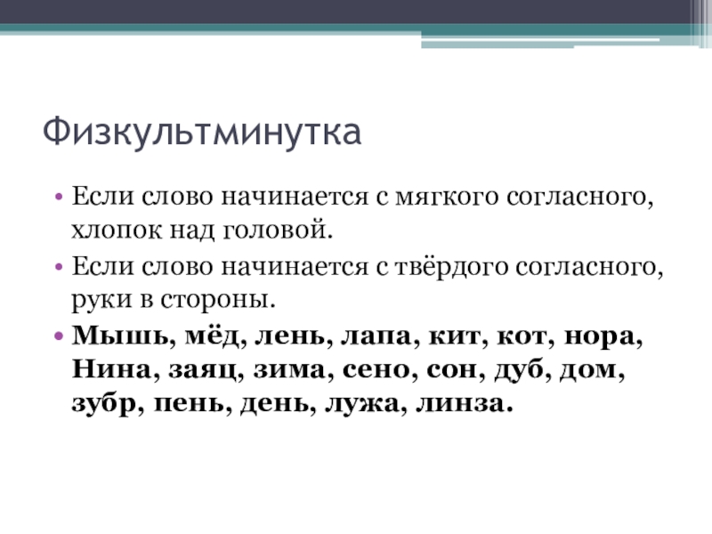 Если слово начинается с мягкого согласного, хлопок над головой.