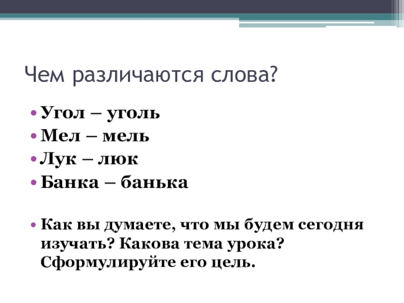 вы думаете, что мы будем сегодня изучать? Какова тема урока? Сформулируйте его цель.