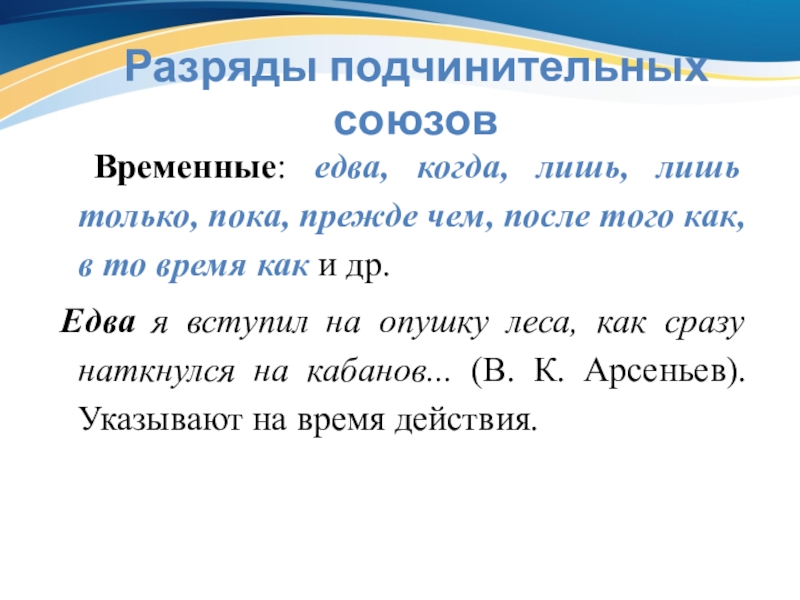 Временные: едва, когда, лишь, лишь только, пока, прежде