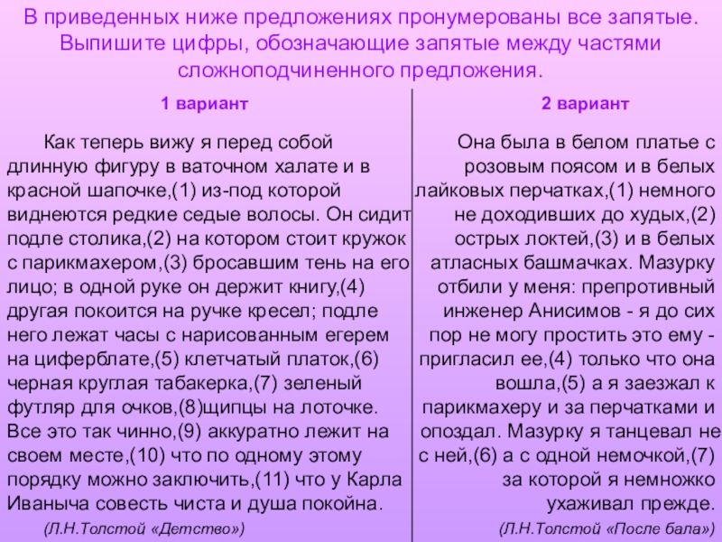 Она была в белом платье с розовым поясом и в белых лайковых перчатках,(1) немного не доходивших до худых,(2) острых локтей,(3) и в белых атласных башмачках. Мазурку отбили у меня: препротивный инженер Анисимов - я до сих пор не могу простить это ему - пригласил ее,(4) только что она вошла,(5) а я заезжал к парикмахеру и за перчатками и опоздал. Мазурку я танцевал не с ней,(6) а с одной немочкой,(7) за которой я немножко ухаживал прежде.