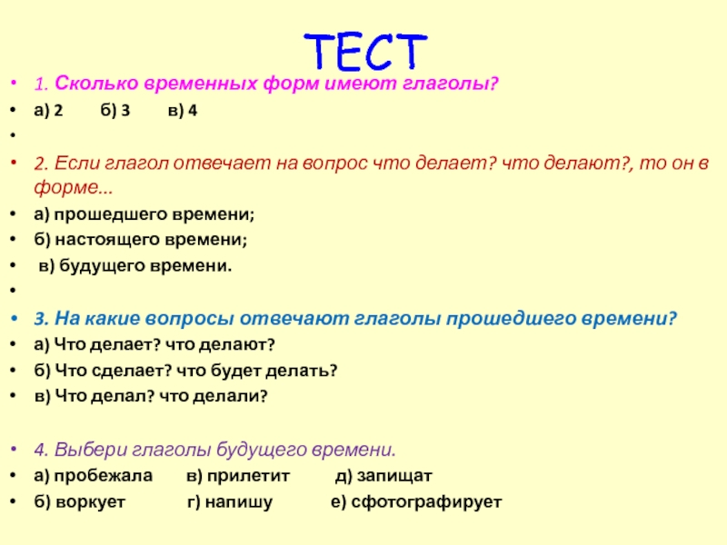 изменение глаголов по числам и лицам