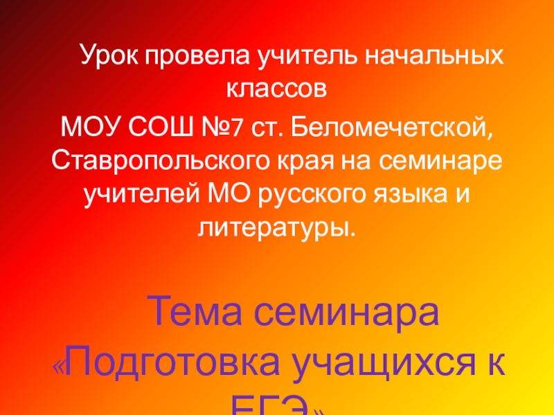 Урок провела учитель начальных классовМОУ СОШ №7 ст. Беломечетской, Ставропольского края на семинаре учителей