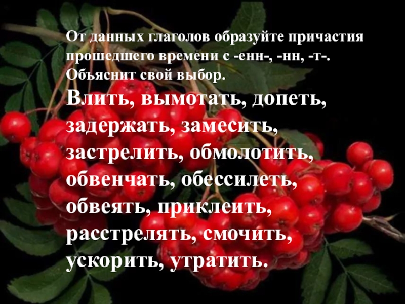 От данных глаголов образуйте причастия прошедшего времени с -енн-, -нн, -т-.