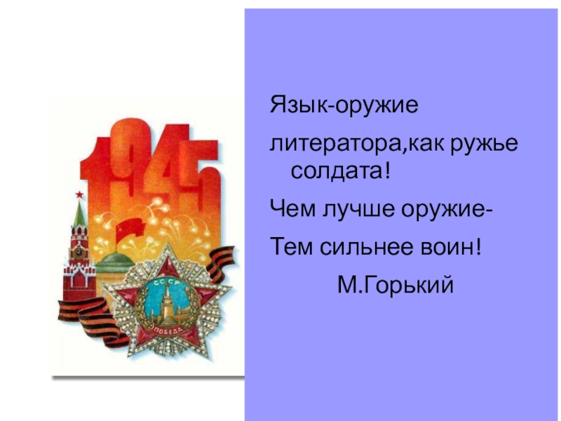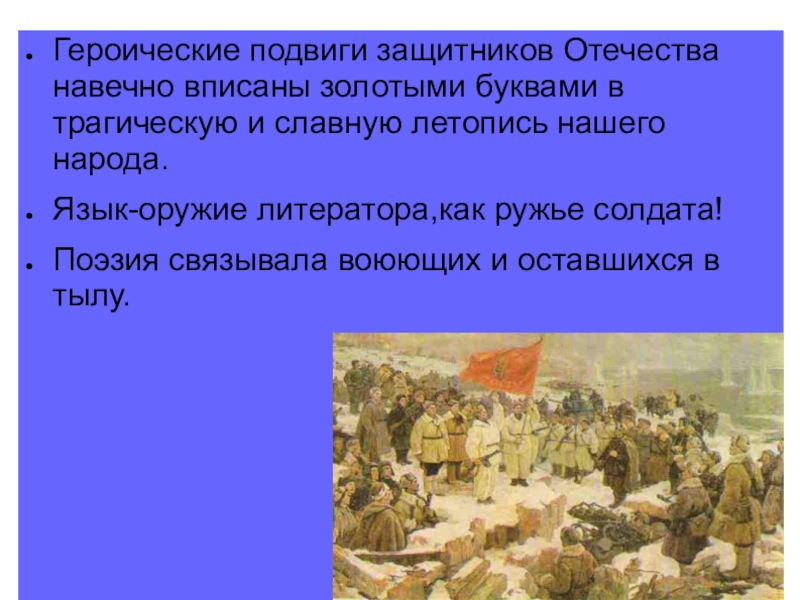 Героические подвиги защитников Отечества навечно вписаны золотыми буквами в трагическую и славную летопись нашего народа.Язык-оружие литератора,как ружье