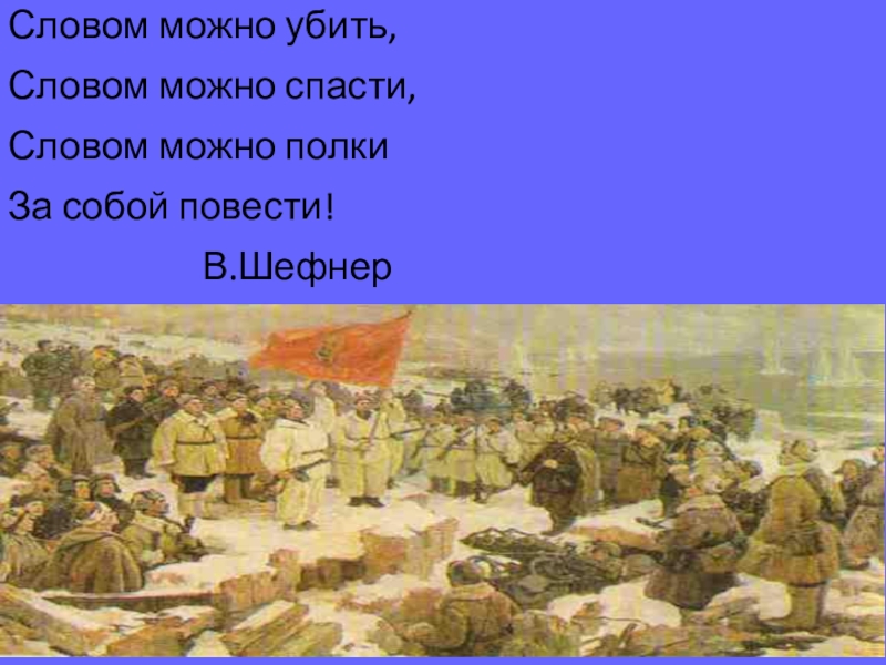 Словом можно убить,Словом можно спасти,Словом можно полкиЗа собой повести!