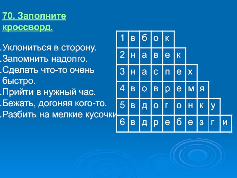 Слайд 2570. Заполните кроссворд.