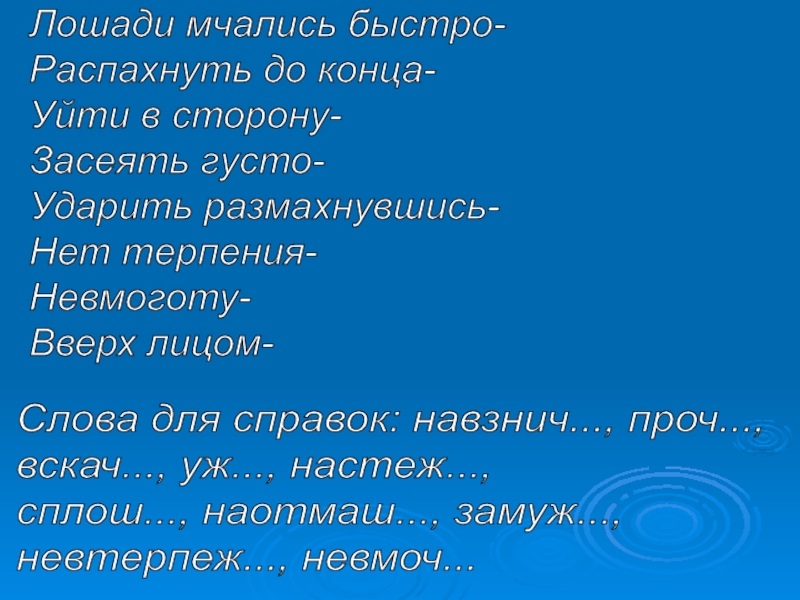 сплош..., наотмаш..., замуж...,