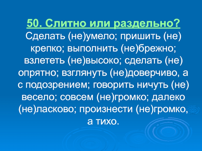 Слайд 2250. Слитно или раздельно?