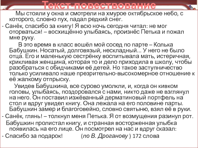 Элементы повествования и рассуждения