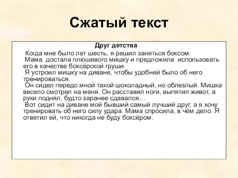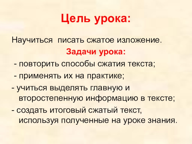 Научиться писать сжатое изложение.
