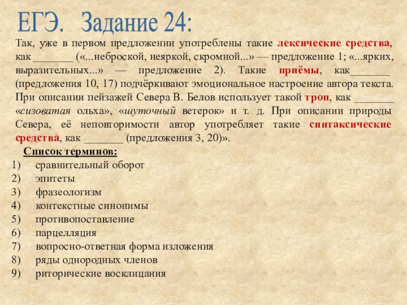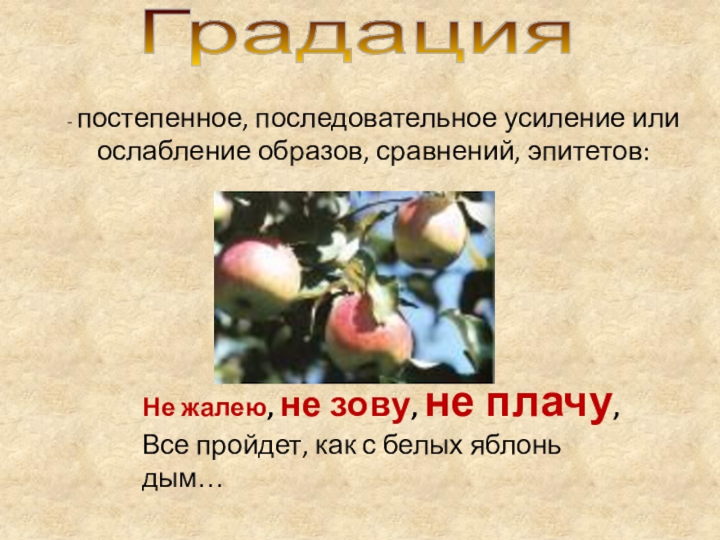 - постепенное, последовательное усиление или ослабление образов, сравнений, эпитетов: