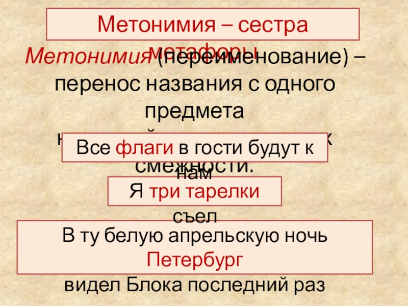 - скрытое сравнение, перенос названия одного предмета на другой на основании их сходства.