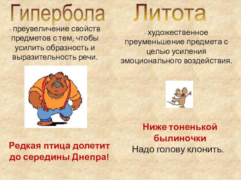 - художественное преуменьшение предмета с целью усиления эмоционального воздействия.