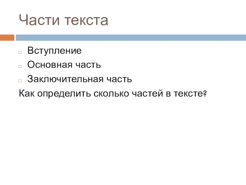 Части текстаВступлениеОсновная частьЗаключительная часть Как определить сколько частей в тексте?