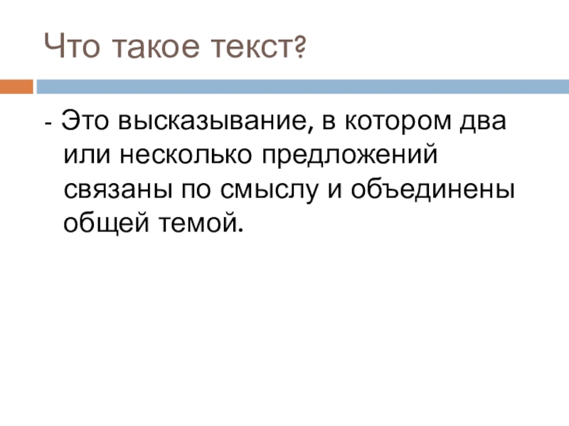 Что такое текст?- Это высказывание, в котором два или несколько предложений связаны по смыслу и объединены общей
