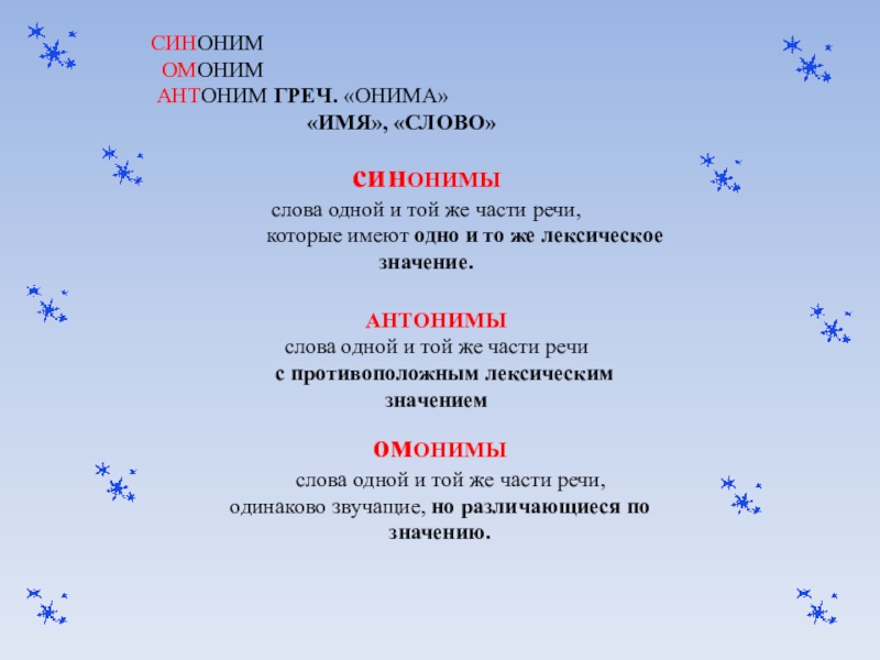 слова одной и той же части речи, одинаково звучащие, но различающиеся по значению.
