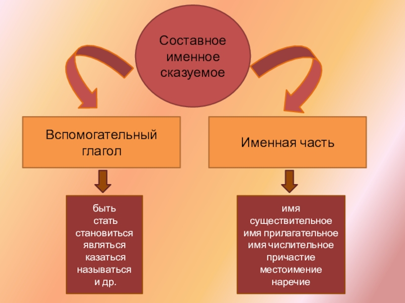 быть стать становиться являться казаться называться и др.имя существительное имя прилагательное имя числительное причастие местоимение наречие