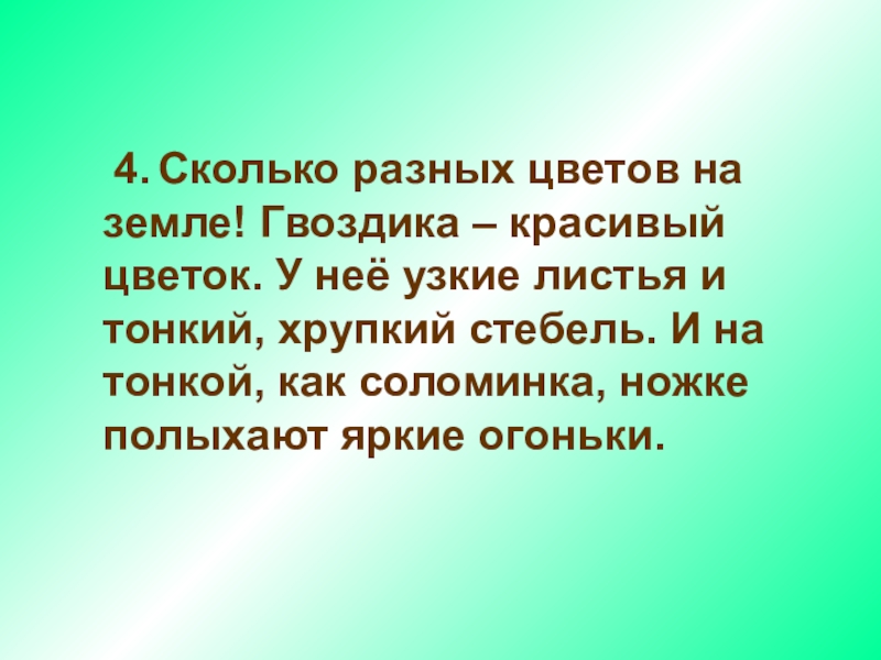 Вчера я был в цирке и видел тигров. Какие они красивые и сильные! Шкура у них полосатая, яркая, глаза горят зелёным огнём, лапы упругие. А когда тигры рычат, видны белые клыки.