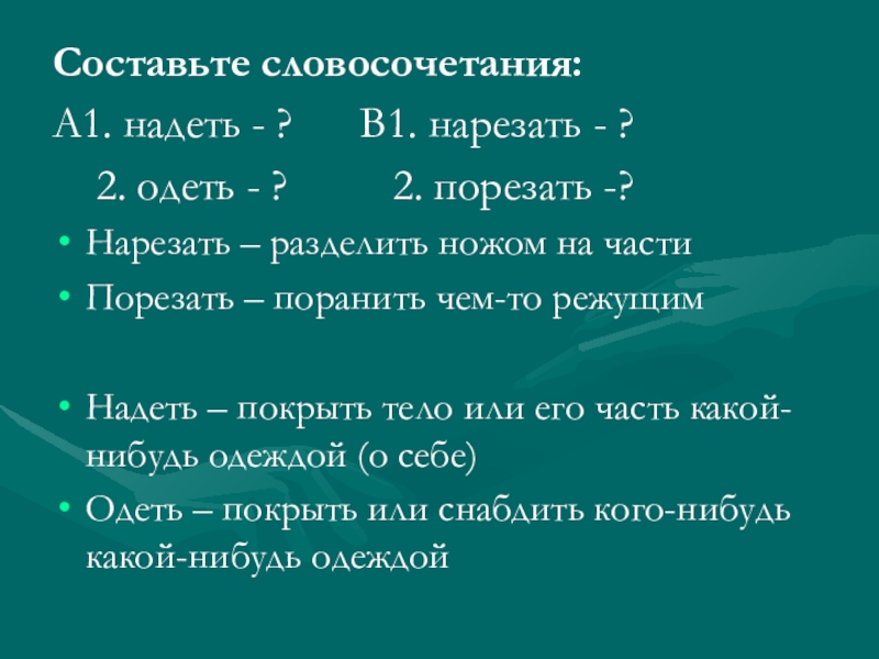 Надеть – покрыть тело или его часть какой-нибудь одеждой (о себе)