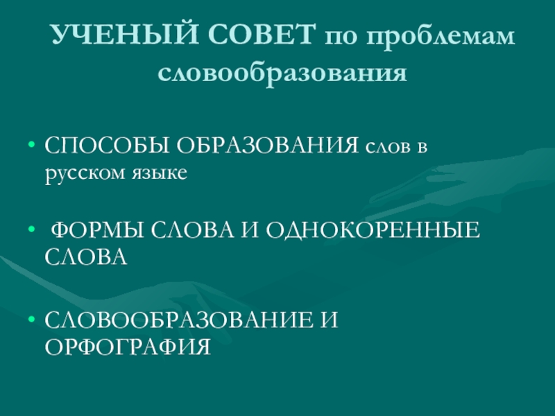 Слайд 2УЧЕНЫЙ СОВЕТ по проблемам словообразования