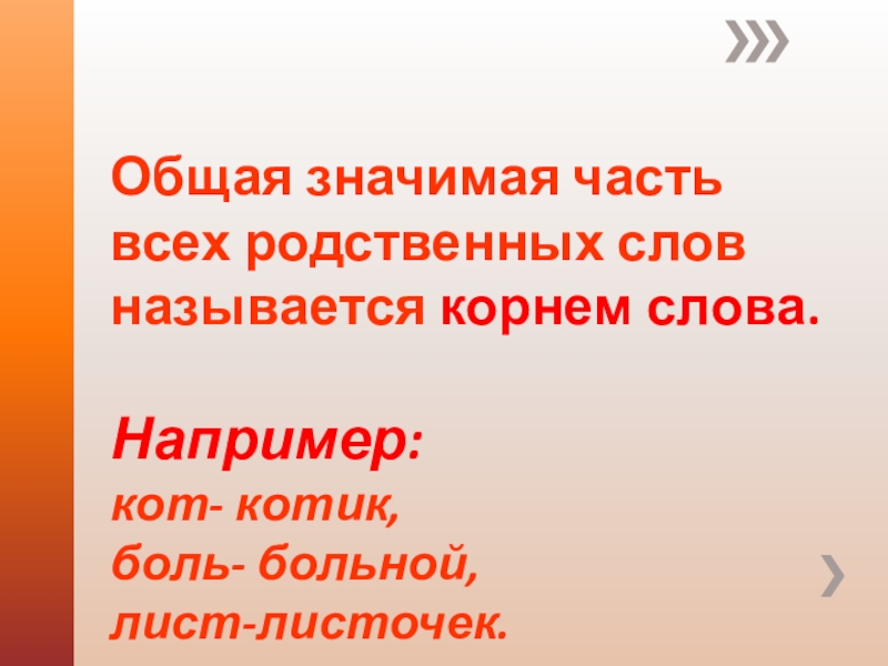 Общая значимая часть всех родственных слов называется корнем слова.