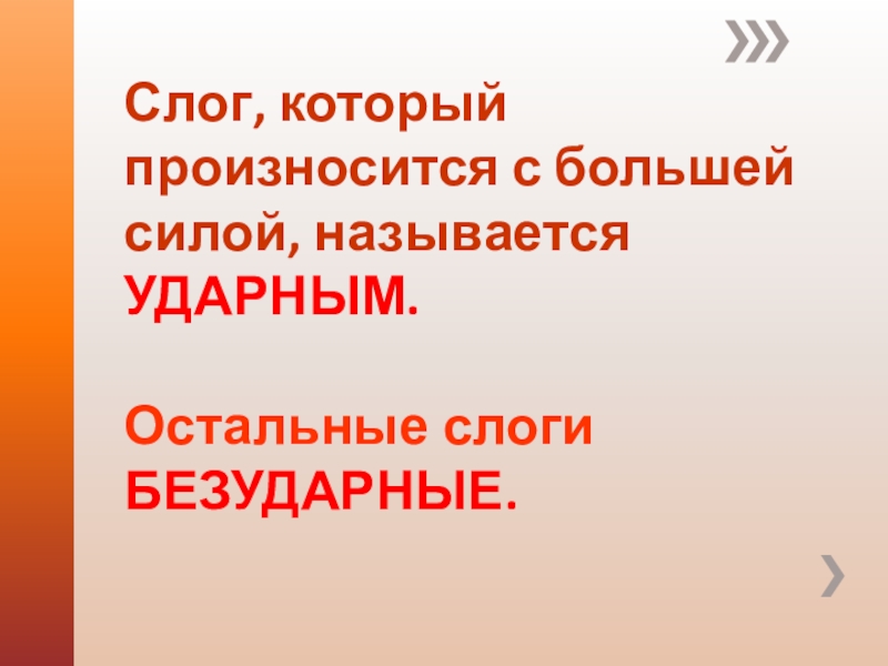 Слог, который произносится с большей силой, называется УДАРНЫМ.