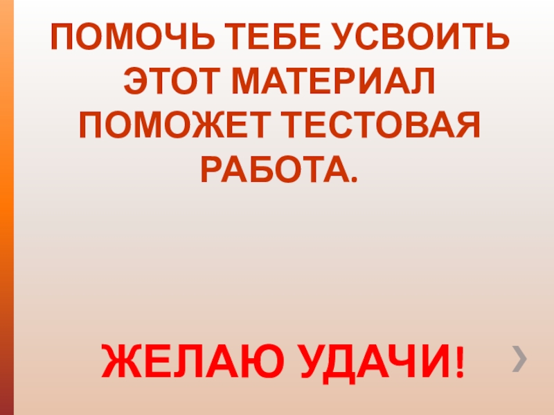 ПОМОЧЬ ТЕБЕ УСВОИТЬ ЭТОТ МАТЕРИАЛ ПОМОЖЕТ ТЕСТОВАЯ РАБОТА.