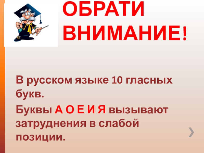Слайд 14Безударный хитрый гласный