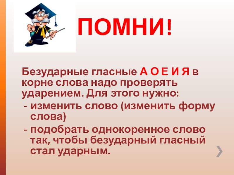 алгоритм проверки безударной гласной корня