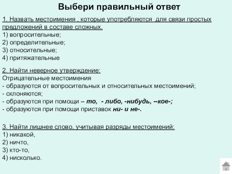 3. Найти лишнее слово, учитывая разряды местоимений: