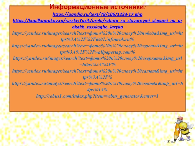 Это сайт презентаций, где можно хранить и обмениваться своими презентациями, докладами, проектами, шаблонами в формате PowerPoint с другими пользователями. Мы помогаем школьникам, студентам, учителям, преподавателям хранить и обмениваться учебными материалами.