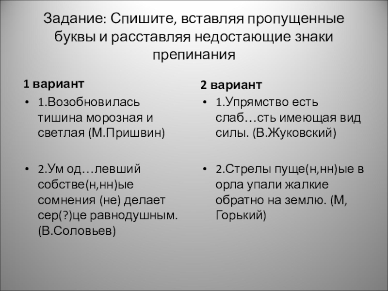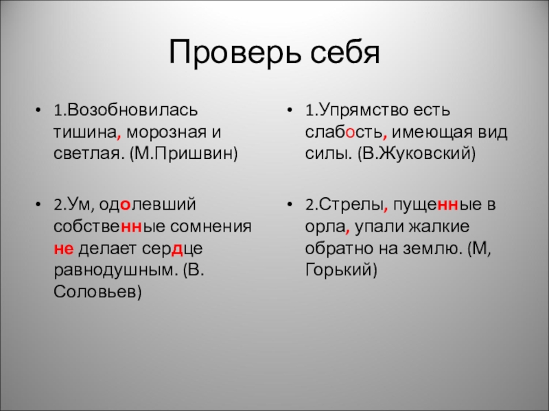 2.Стрелы пуще(н,нн)ые в орла упали жалкие обратно на землю. (М,Горький)