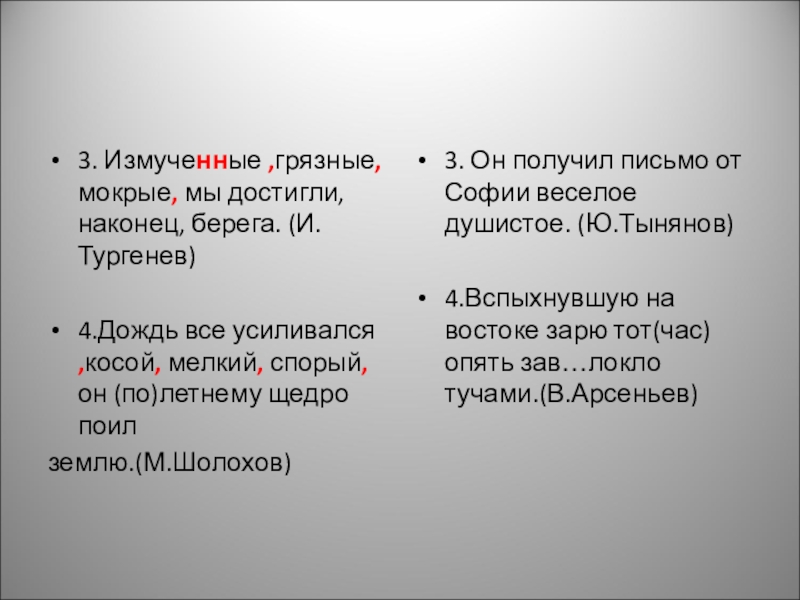 4.Вспыхнувшую на востоке зарю тот(час)опять зав…локло тучами.(В.Арсеньев)