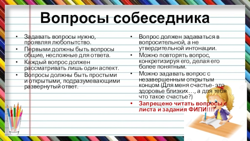 Запрещено читать вопросы с листа и задания ФИПИ!!!!