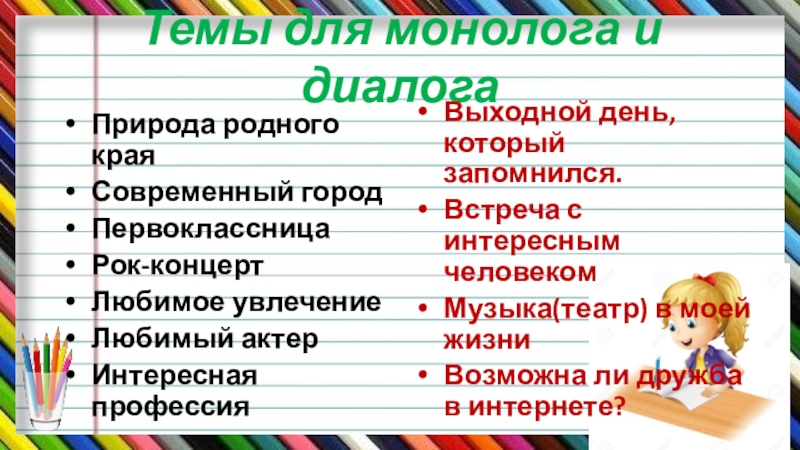 Монолог должен составить 10 фраз, обладающих смысловой цельностью.