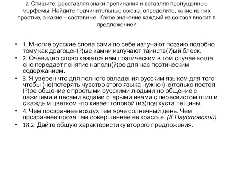 Слайд 92. Спишите, расставляя знаки препинания и вставляя пропущенные морфемы. Найдите подчинительные