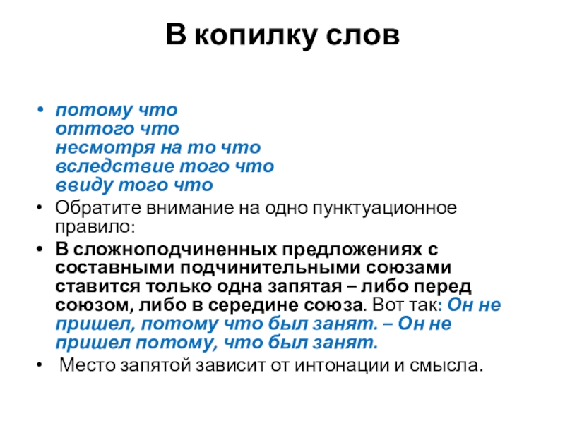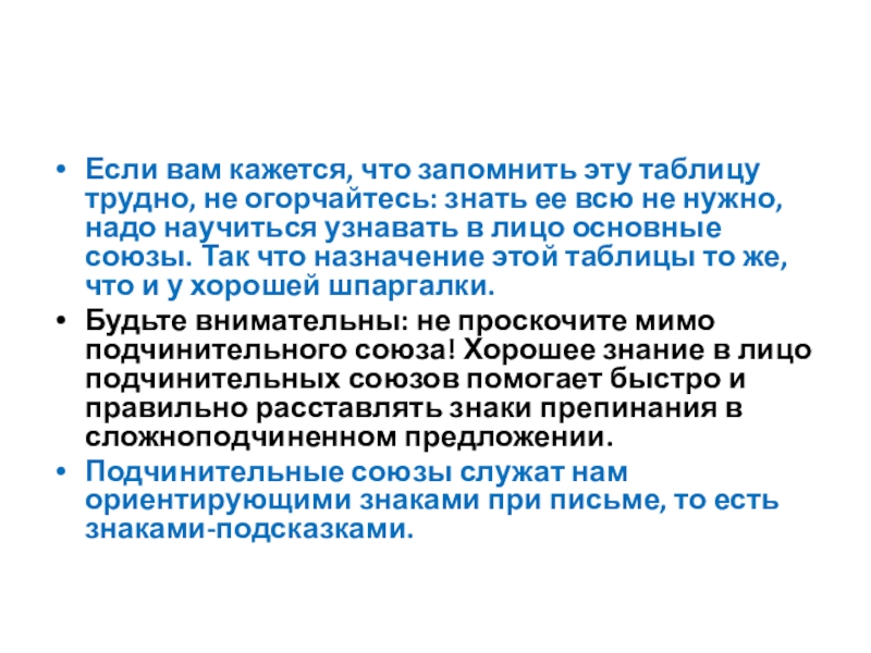 Подчинительные союзы служат нам ориентирующими знаками при письме, то есть знаками-подсказками.