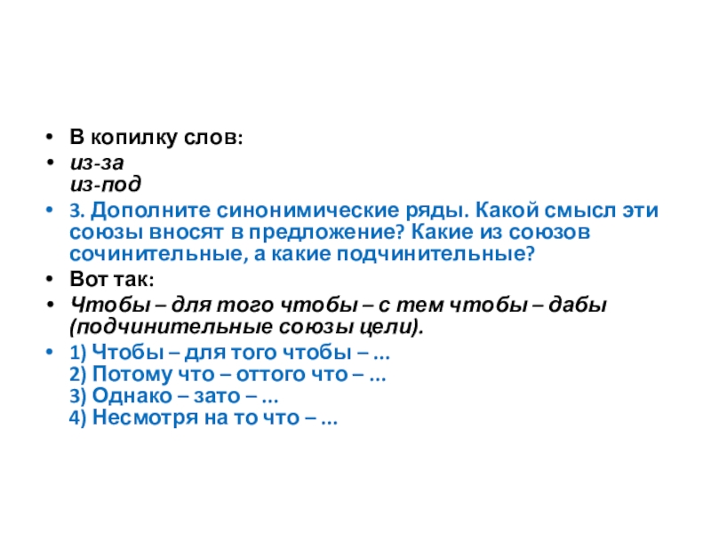 3. Дополните синонимические ряды. Какой смысл эти союзы вносят