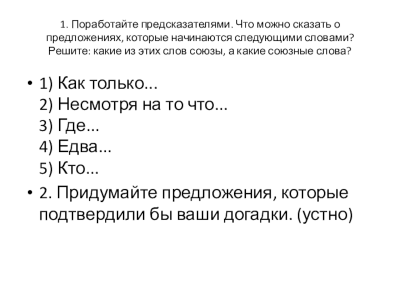 Слайд 81. Поработайте предсказателями. Что можно сказать о предложениях, которые начинаются следующими