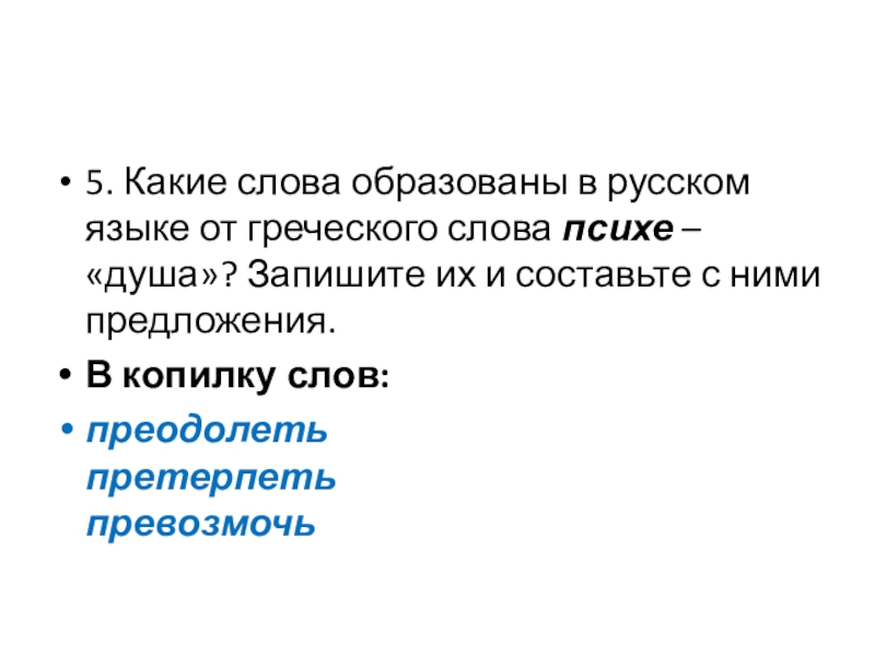 Слайд 165. Какие слова образованы в русском языке от греческого слова психе
