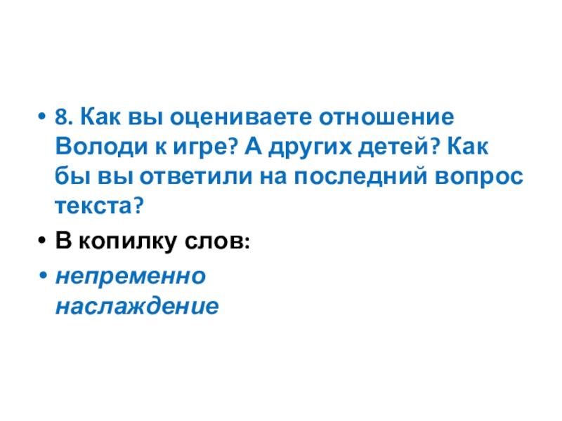 Слайд 228. Как вы оцениваете отношение Володи к игре? А других детей?