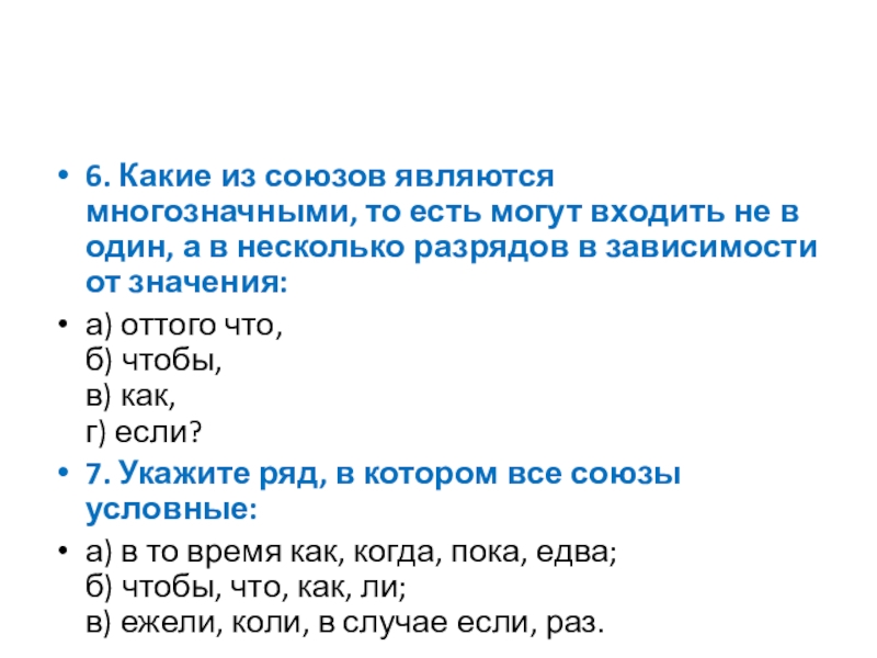 Слайд 136. Какие из союзов являются многозначными, то есть могут входить не