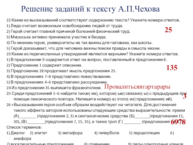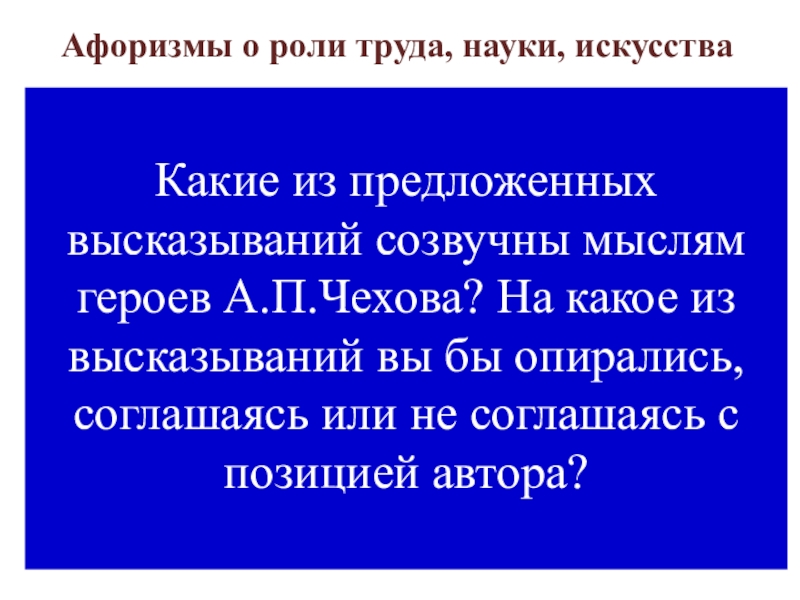 Какие из предложенных высказываний созвучны мыслям героев А.П.Чехова? На какое из высказываний вы бы опирались, соглашаясь или не соглашаясь с позицией автора?