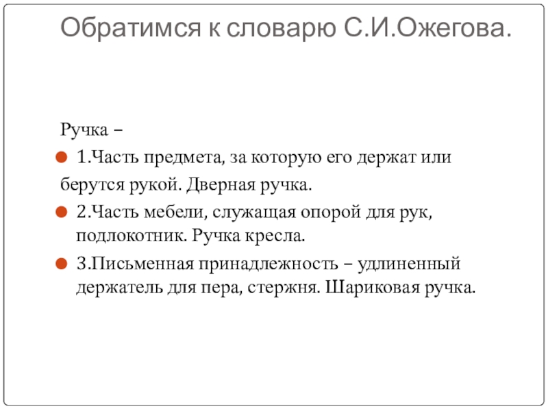1.Часть предмета, за которую его держат