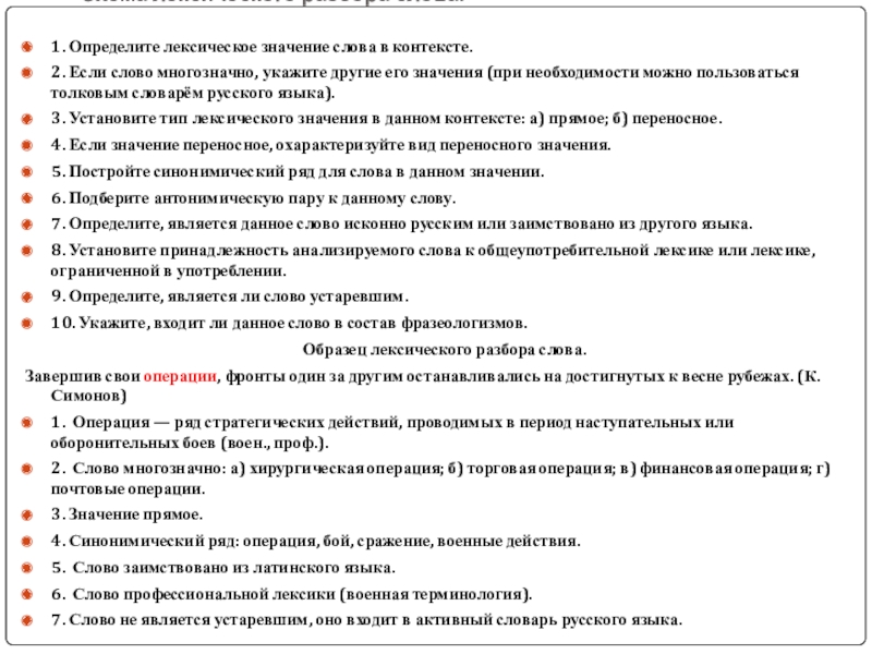 1. Определите лексическое значение слова в контексте.